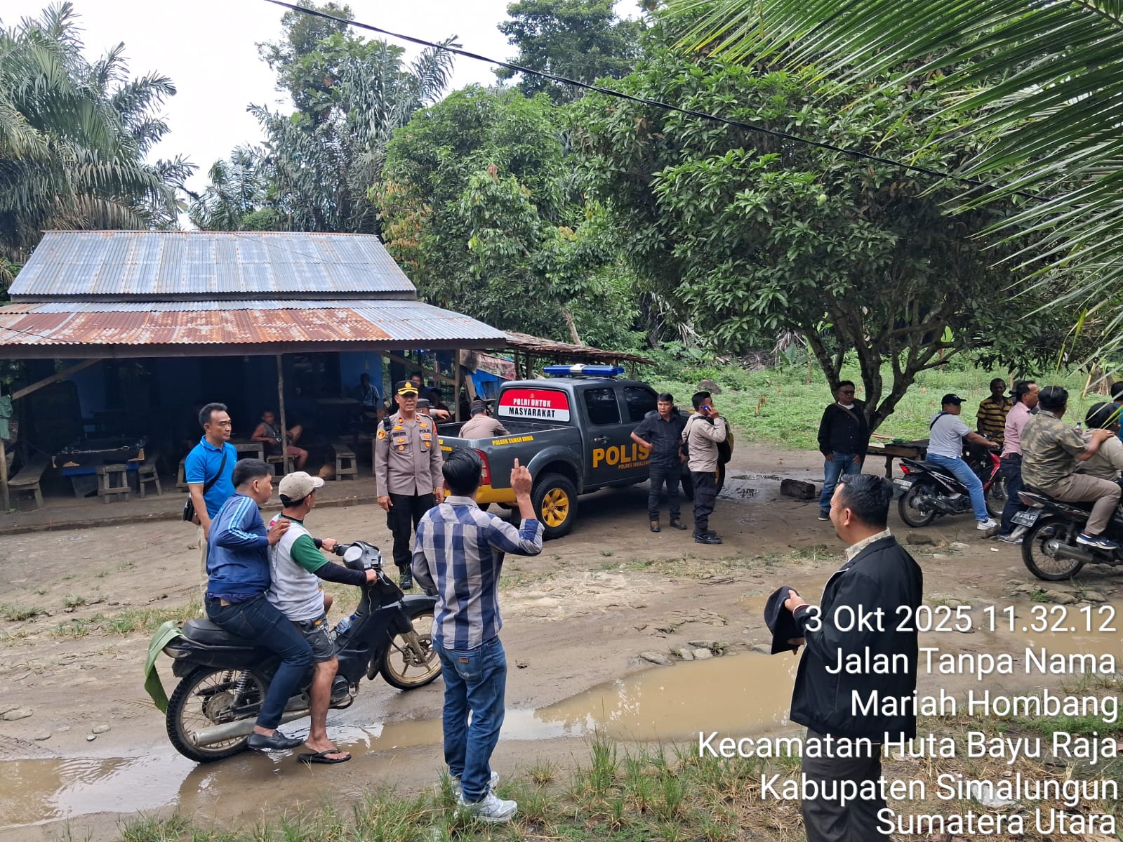 Kepala Kepolisian Sektor Tanah Jawa Kompol Asmon Bufitra, S.H., M.H., saat dikonfirmasi pada Jumat, 3 Oktober 2025, sekitar pukul 16.30 WIB, menjelaskan tugas pengamanan tersebut. “Ini merupakan bentuk pelayanan Polri untuk masyarakat. Kami melaksanakan pengamanan terkait adanya pemeriksaan setempat dalam perkara perdata Nomor 18/Pdt.Bth/2025/PN Simal di tiga titik lokasi, yaitu satu di Nagori Bosar Galugur dan dua titik di Nagori Pokan Baru,” ujar Kapolsek.