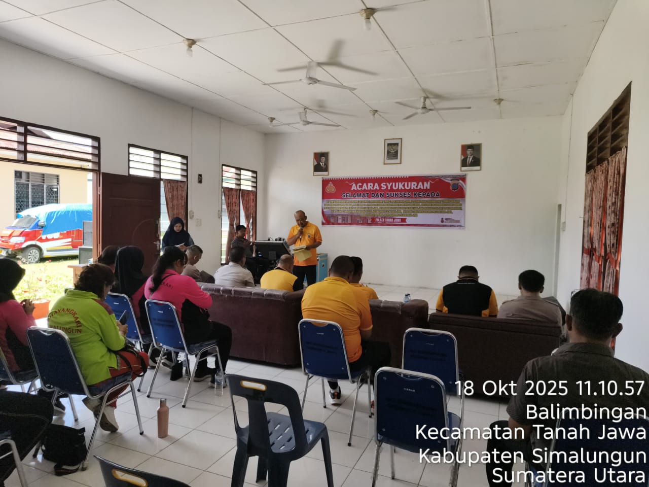 Acara syukuran dilaksanakan pada Sabtu, 18 Oktober 2025, mulai pukul 11.00 WIB hingga selesai, bertempat di Aula Wira Pratama Polsek Tanah Jawa, Kecamatan Tanah Jawa, Kabupaten Simalungun. Kegiatan berlangsung dalam suasana penuh kehangatan dengan kondisi cuaca cerah yang mendukung.