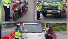 Sat Lantas Polres Pematangsiantar Bagikan Brosur Tertib Berlalu Lintas kepada Pengguna Jalan