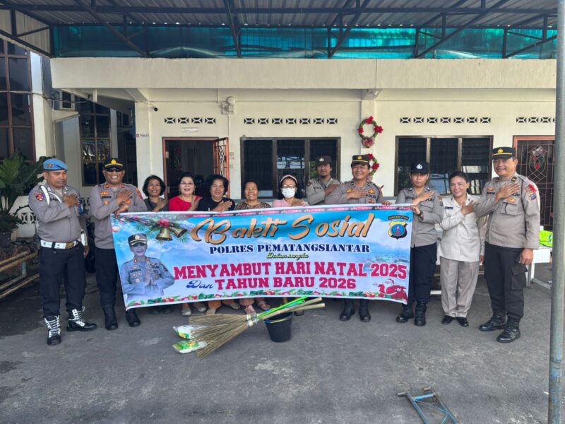Liputanmetrosumut.com || Pematang Siantar – Dalam rangka sambut Perayaan Natal Tahun 2025 dan Tahun Baru 2026 (Nataru), Kapolsek Siantar Selatan IPTU Priston Simbolon bersama personil memberikan bantuan sosial (Bansos) di GKPS Jalan Sudirman, Kota Pematangsianțar, Selasa 23 Desember 2025 pagi pukul : 09.30 Wib.