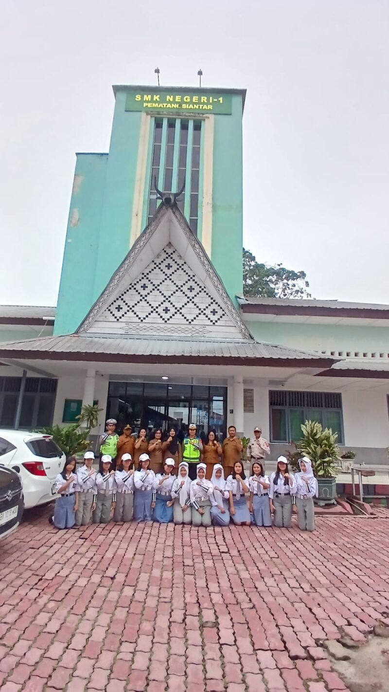 Liputanmetrosumut.com || Pematang Siantar – Satuan Lalu Lintas (Sat Lantas) Polres Pematangsiantar melalui Kanit Kamsel IPDA Serly Tarigan dan personil Uni Kamsel menghadiri Pelantikan Patroli Keamana Sekolah (PKS) Junior di SMK Negeri 1, Jln. Bali Kecamatan Siantar Utara Kota Pematangsiantar, pada Sabtu 6 September 2025 siang pukul : 11.00 Wib.