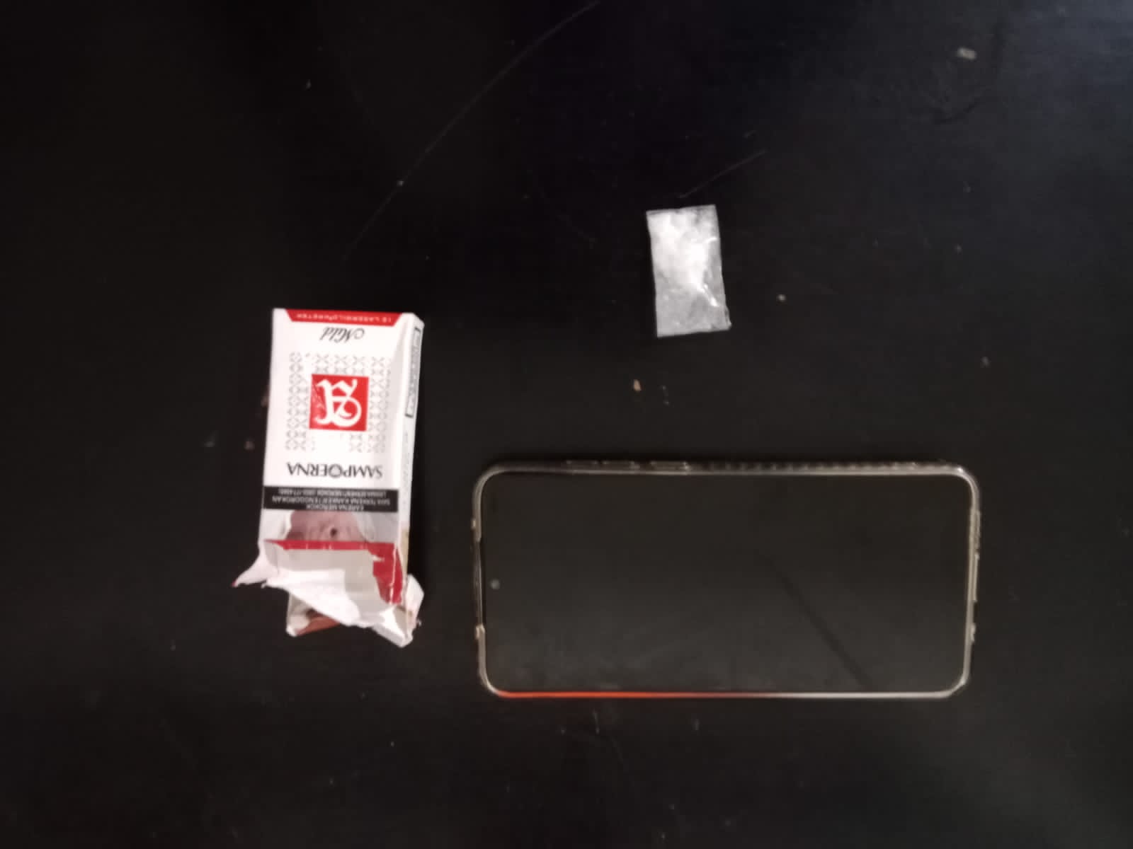 Ketika menyadari kehadiran petugas, pelaku panik dan berusaha menghilangkan barang bukti dengan membuang sebuah kotak rokok. Namun, tindakan cepat personil Sat Narkoba berhasil mengamankan barang bukti tersebut.