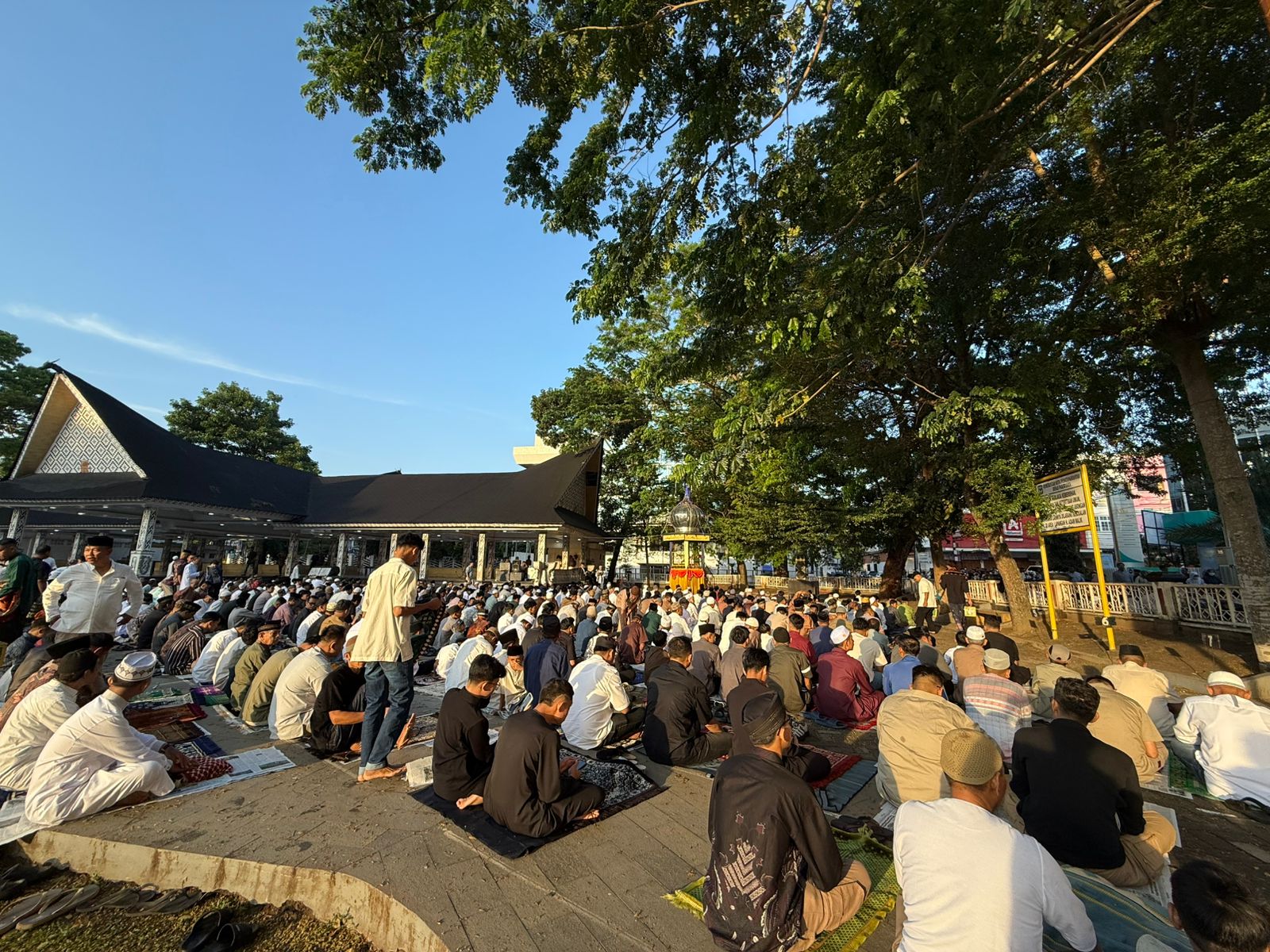 Sekira pukul 08.05 Wib Sholat Idul Fitri 1447 H/ 2026 M yang diselenggarakan Pemerintah Kota (Pemko) Pematangsiantar selesai dilaksanakan dan jemaah berangsur-angsur meninggalkan lapangan H. Adam Malik.