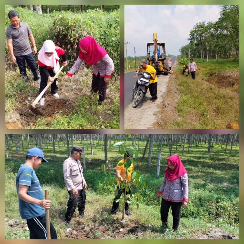 Sebanyak 100 bibit pohon melinjo ditanam dengan dukungan alat berat dari pihak perusahaan, sehingga pelaksanaan kegiatan berjalan dengan lancar dan penuh semangat kebersamaan.