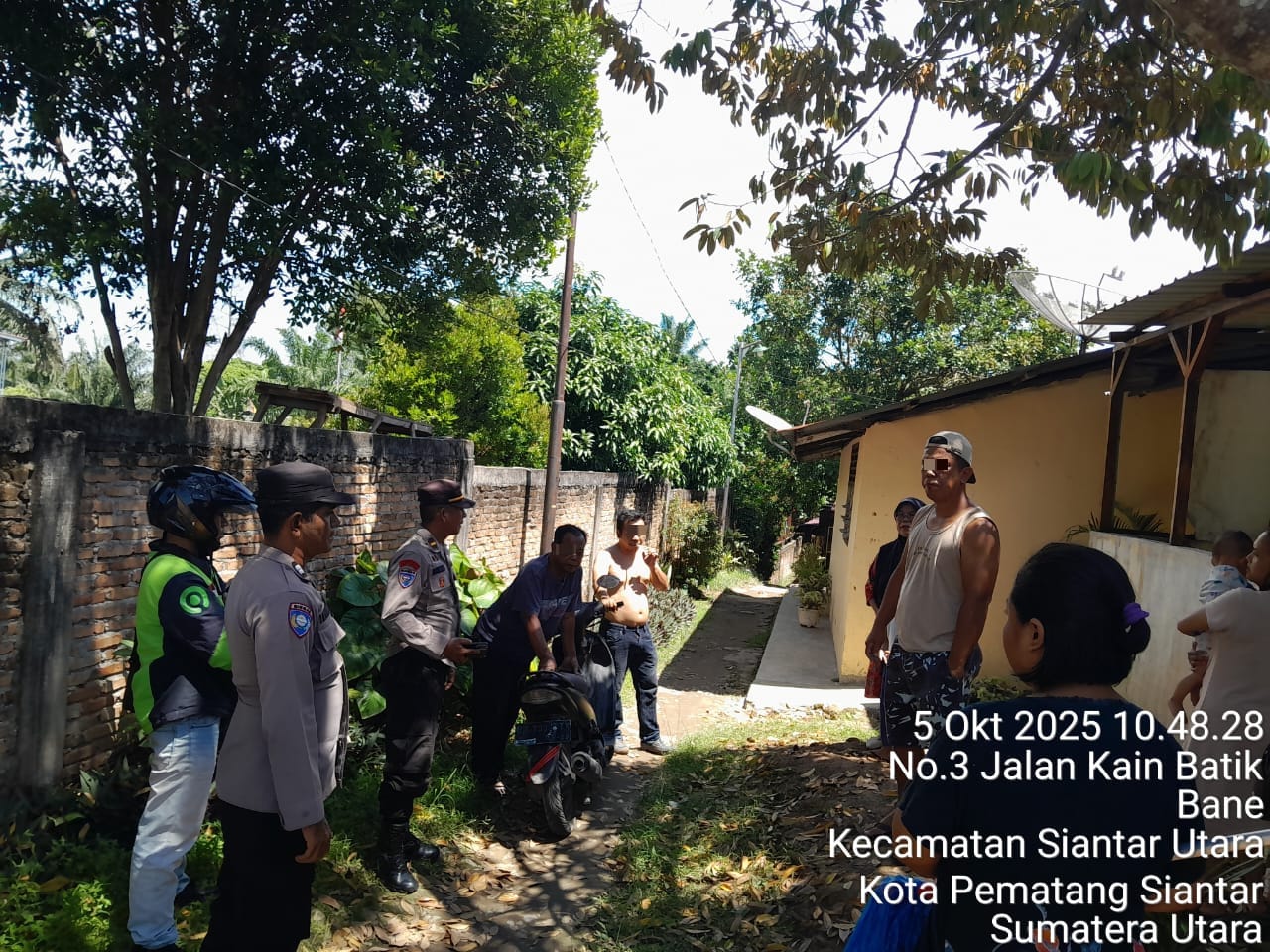 Liputanmetrosumut.com   ||  Pematang Siantar –       Tindaklanjut laporan masyarakat (Tinjut Lapmas) di Call Center 110 Polres Pematangsiantar, personil Piket Polsek Siantar Utara melakukan mediasi dugaan keribuatan di Jalan Kain Batik, Kelurahan Bane, Kecamatan Siantar Utara, Kota Pematangsiantar, pada hari Kamis 5 Oktober 2025 siang pukul 10.45 WIB.